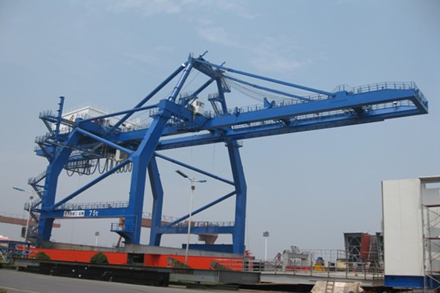 軌道式集裝箱門式起重機方面,大連重工研制的該類產品具有裝卸速度快、自動化程度高的特點,適合于鐵路及碼頭后方堆場。目前產品主要機型為吊具下30.5噸—61噸。