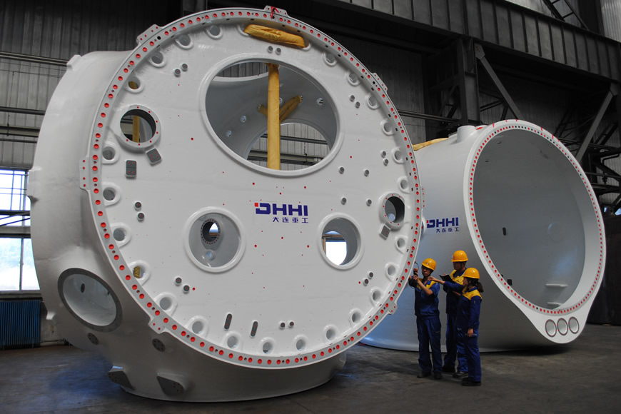 風電球鐵鑄件方面,大連重工球墨鑄鐵風電產品年產能10萬噸,擁有鑄造生產線8條,產品覆蓋0.85至12兆瓦等多種機型(輪轂、彎頭、底座等),月產海上風電鑄件產品70套以上,率先成功研制出3至4.5 兆瓦、5至7兆瓦、8至10 兆瓦、10至12 兆瓦等多種風電機型鑄件產品。