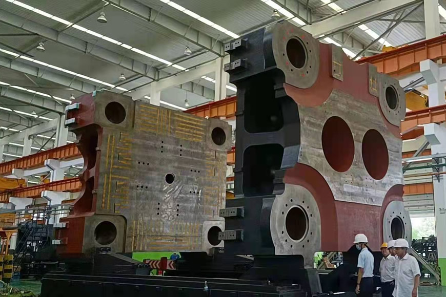 注塑機是利用塑料成型模具將熱塑性塑料或熱固性塑料制成各種形狀的塑料制品的成型設(shè)備,能滿足航空航天、工程機械等領(lǐng)域?qū)Τ笮椭破返男枨蟆4笮颓蚰T鐵模板是注塑機的關(guān)鍵部件。大連重工是國內(nèi)少數(shù)幾家能夠研制該類產(chǎn)品的企業(yè),產(chǎn)品型號涵蓋了244-8500噸鎖模力多種系列,成功為歐洲、北美及國內(nèi)客戶研制了6600噸級至8500噸級多型號注塑機模板,為我國大型注塑機產(chǎn)業(yè)發(fā)展提供了強有力的裝備技術(shù)支撐。