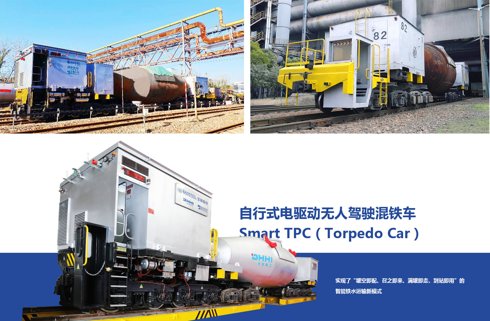 自行式電驅(qū)動(dòng)無(wú)人駕駛混鐵車Smart TPC(Torpedo Car)是一種綠色、智能、高效的鐵水運(yùn)輸設(shè)備,采用自動(dòng)駕駛,純電力驅(qū)動(dòng),實(shí)現(xiàn)了“罐空即配、召之即來(lái)、滿罐即走、到站即用”的智能鐵水運(yùn)輸新模式,可智能、綠色、高效地完成從高爐到煉鋼的鐵水運(yùn)輸作業(yè)。